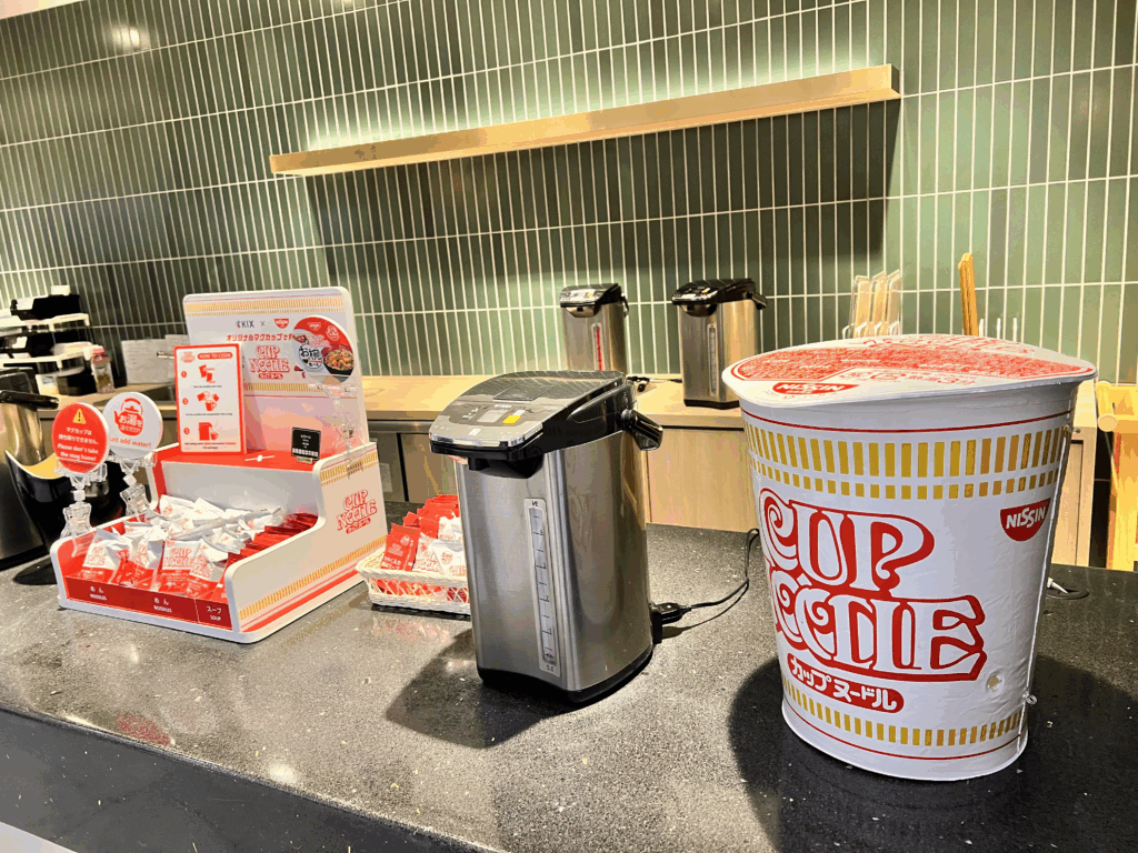 そして注目すべきは、ラウンジ内に設置されている 「カップヌードルコーナー」!