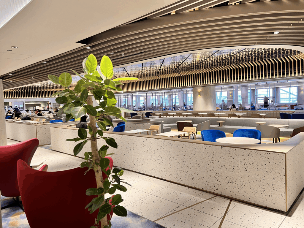 ラウンジ内の雰囲気と座席構成|開放感と多様性が魅力