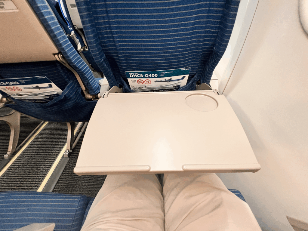 DHC8-Q400は横2−2の配列で、横幅も前後間隔もジェット機並みにしっかり確保されていました。