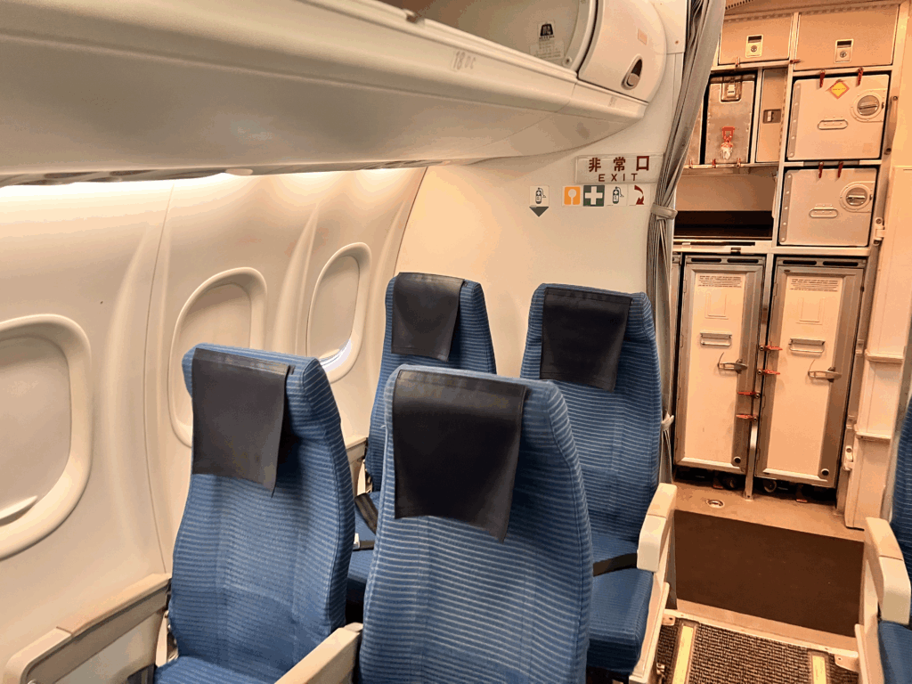 このあたりは機体の真ん中に近くて、前後に比べると揺れがマイルドに感じられるんです。