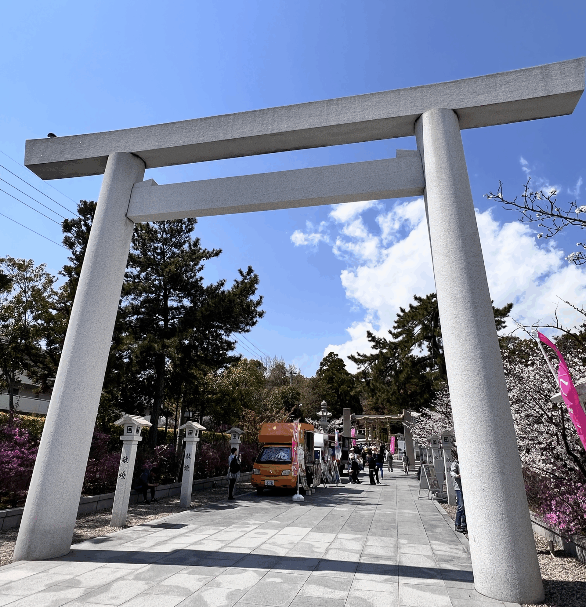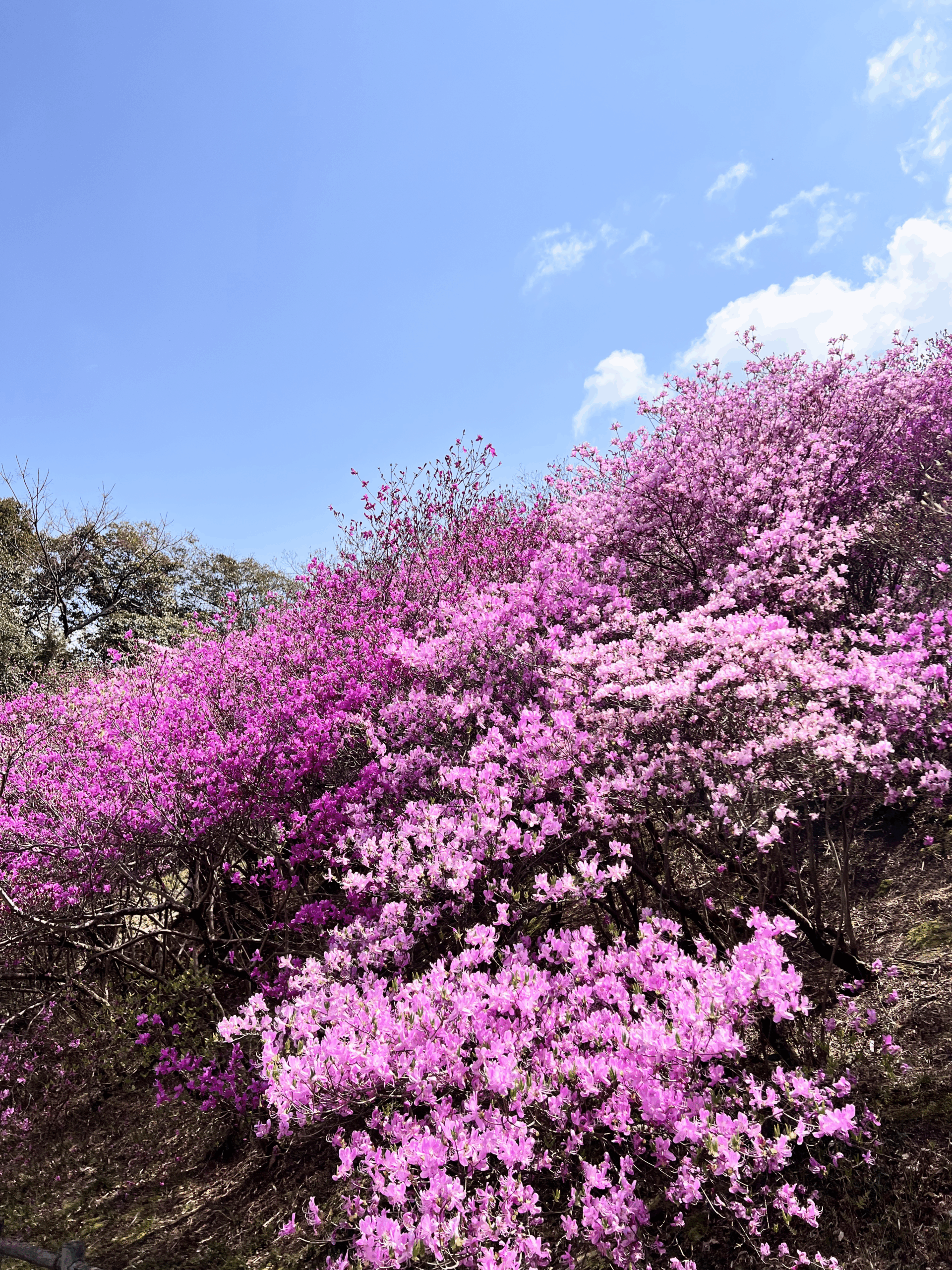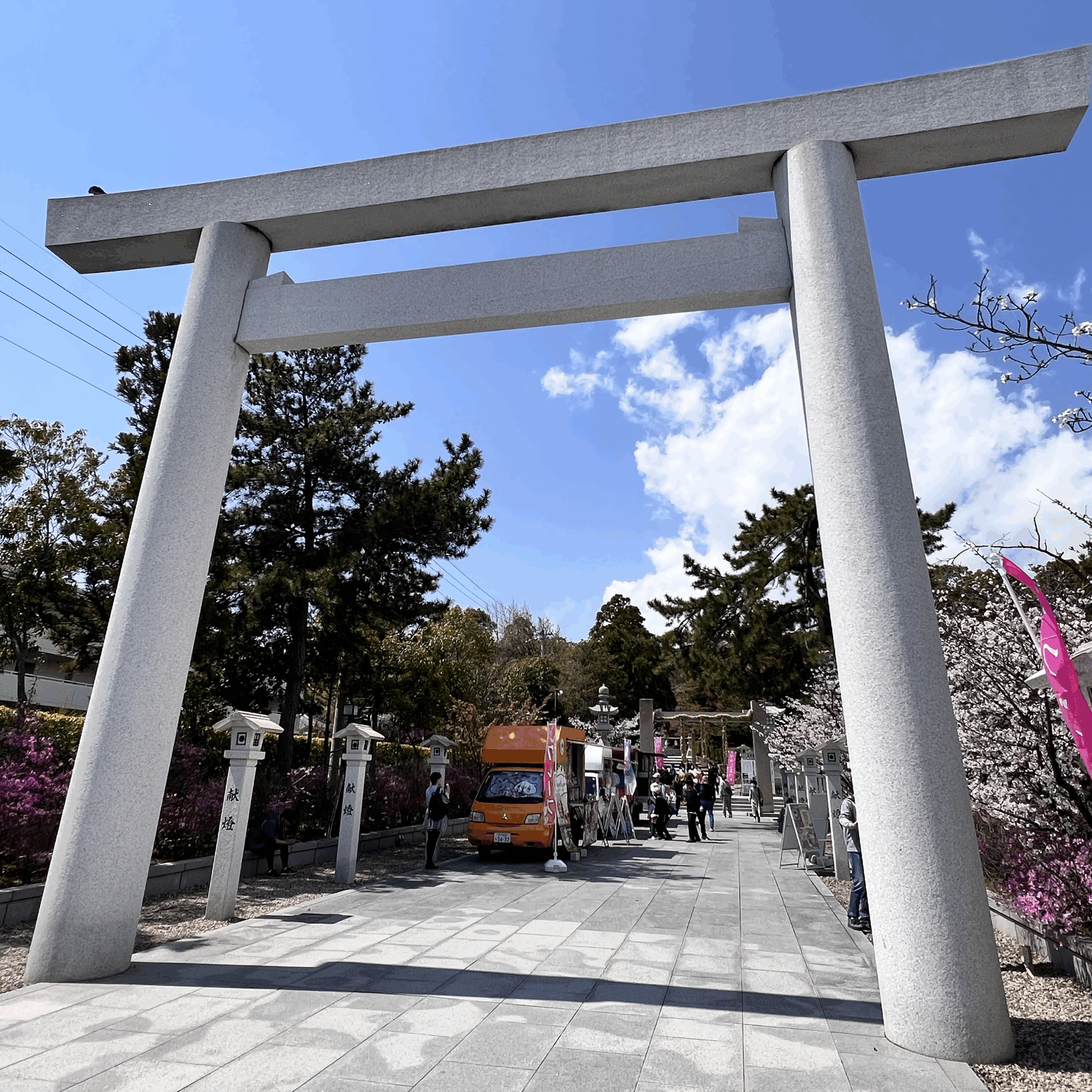 訪れた日は、ちょうど桜とつつじが咲き誇る春の季節。 花々の彩りと白い鳥居がとても印象的でした。