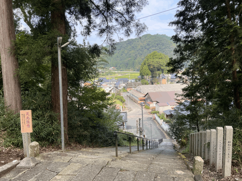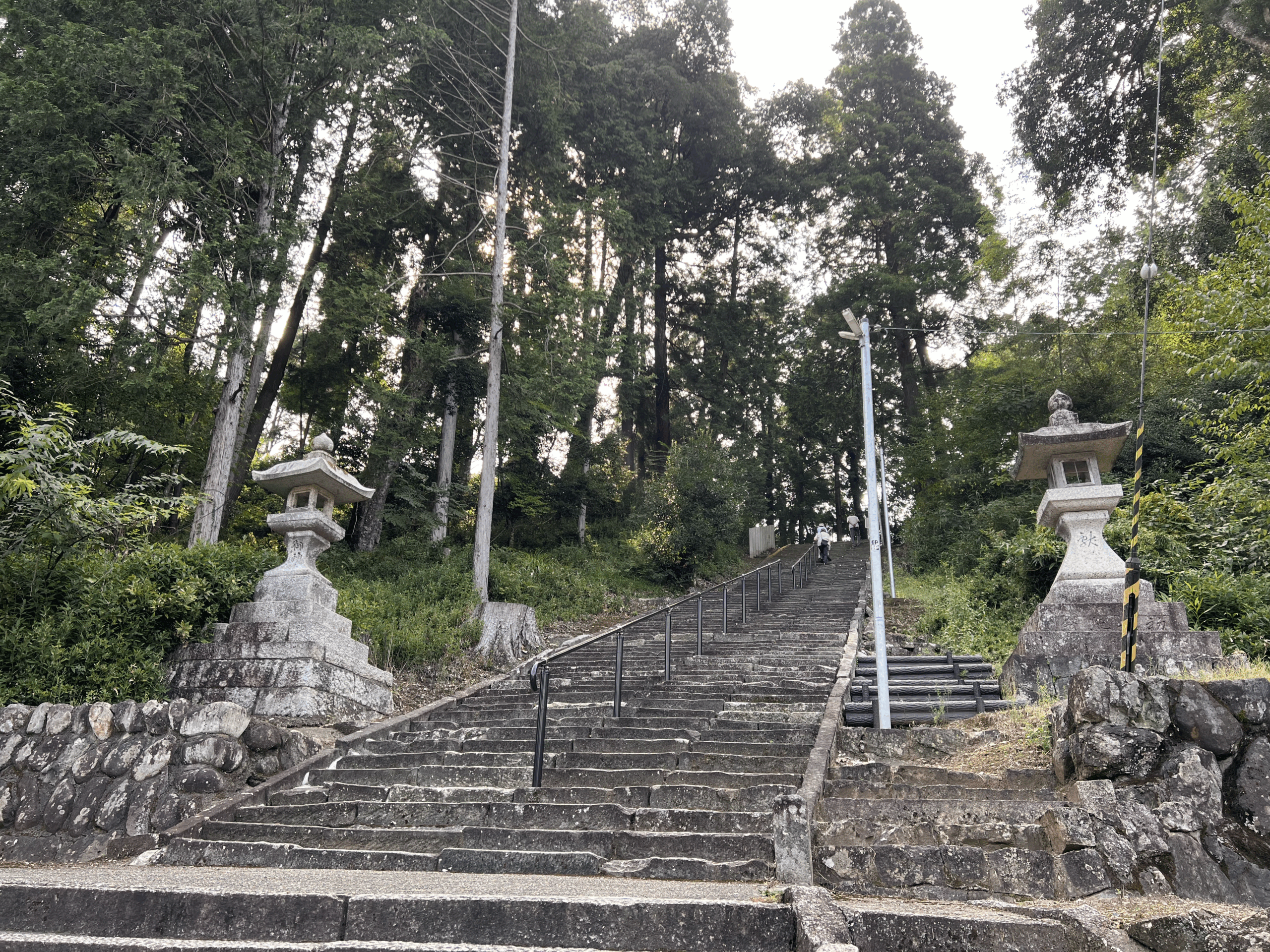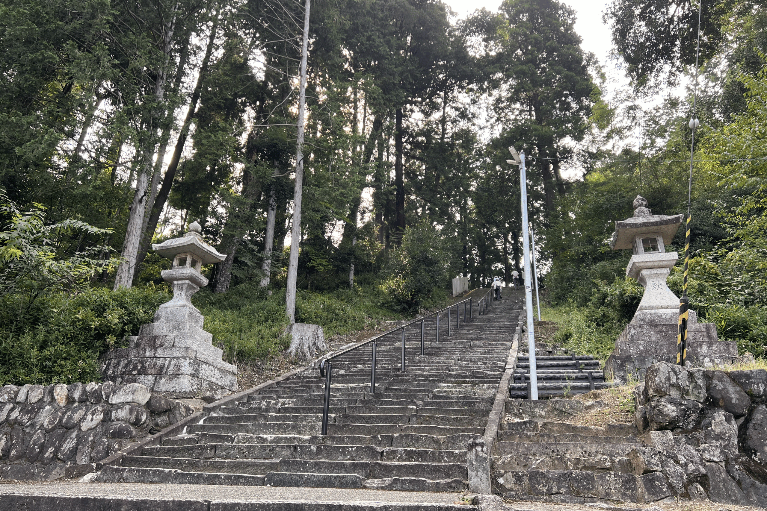 神社の入口に立つと、まっすぐに空へ向かうように伸びた長い石段が出迎えてくれます。