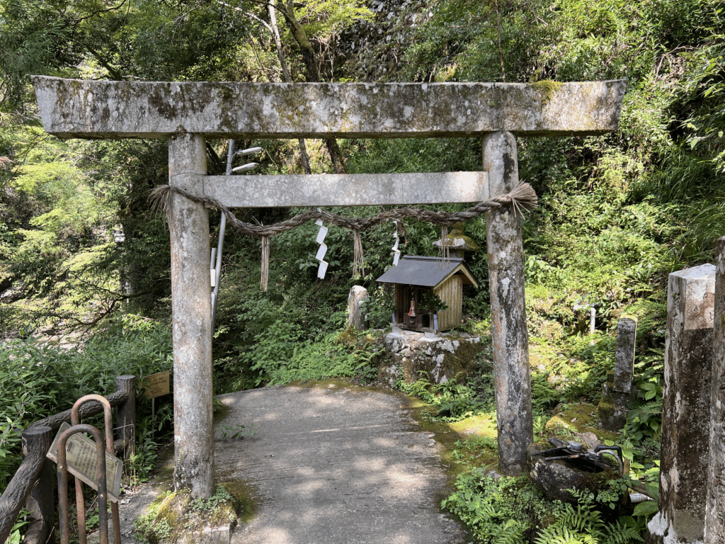 そして鳥居をくぐると、左手に小さな祠が見えてきます。 この祠は奥にある天岩戸の祠とは異なり、 まるで訪れた者が心を整え、これから進む“特別な空間”へと向かう前にそっと挨拶を交わすような場所のように感じました。