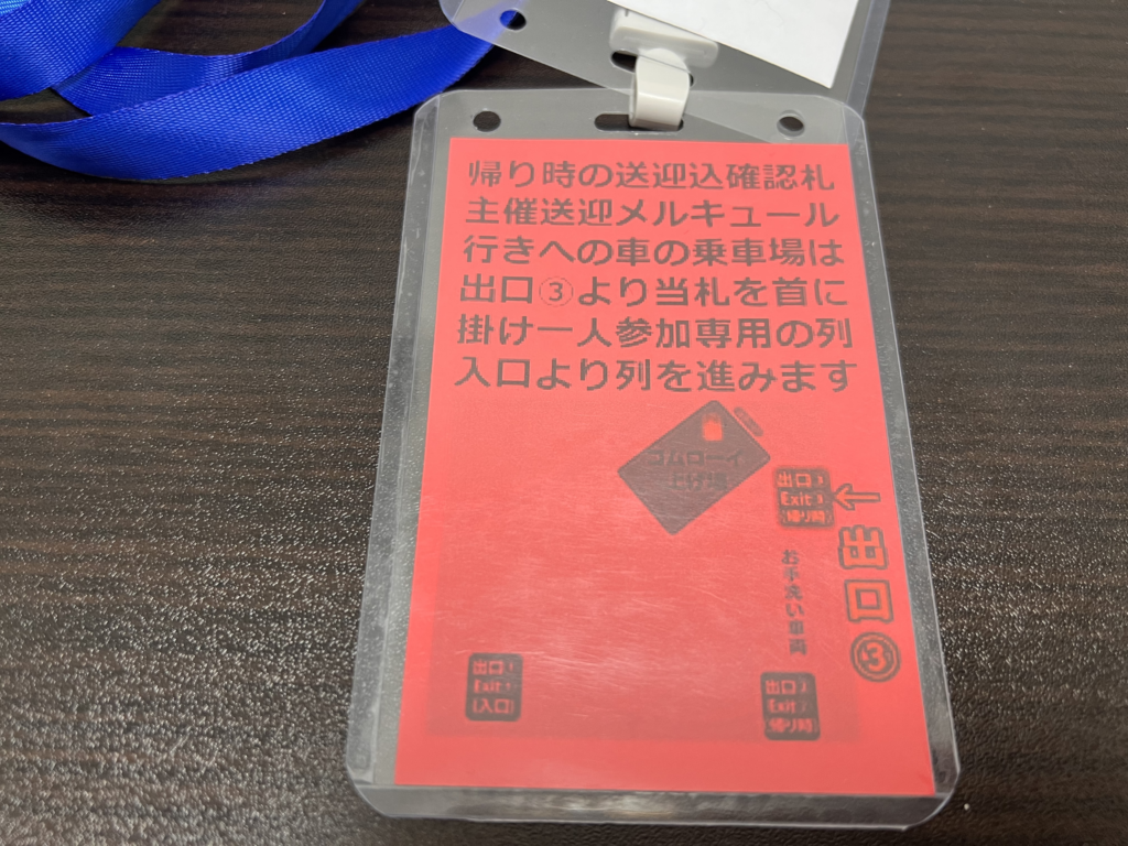 また、この参加証には「帰りのバン乗り場」 が記載されていますが、ちょっと大雑把でわかりづらいですが、実際は多くの参加者がバン乗り場へ移動するため、人の流れに従うだけで迷わず乗り場に着ける ので心配はいりません。