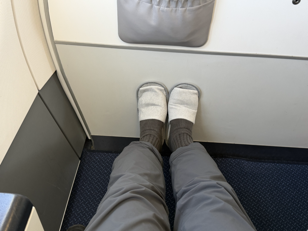 それにプレミアムクラス専用のスリッパが備え付けられており、靴から空き替えて一気に