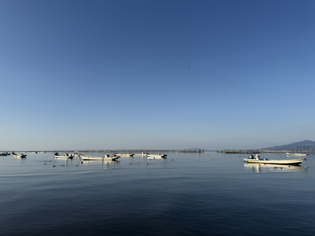漁船が点々と浮かぶ景色も、有明海って感じだ漂い格別な感じが伝わってきます。