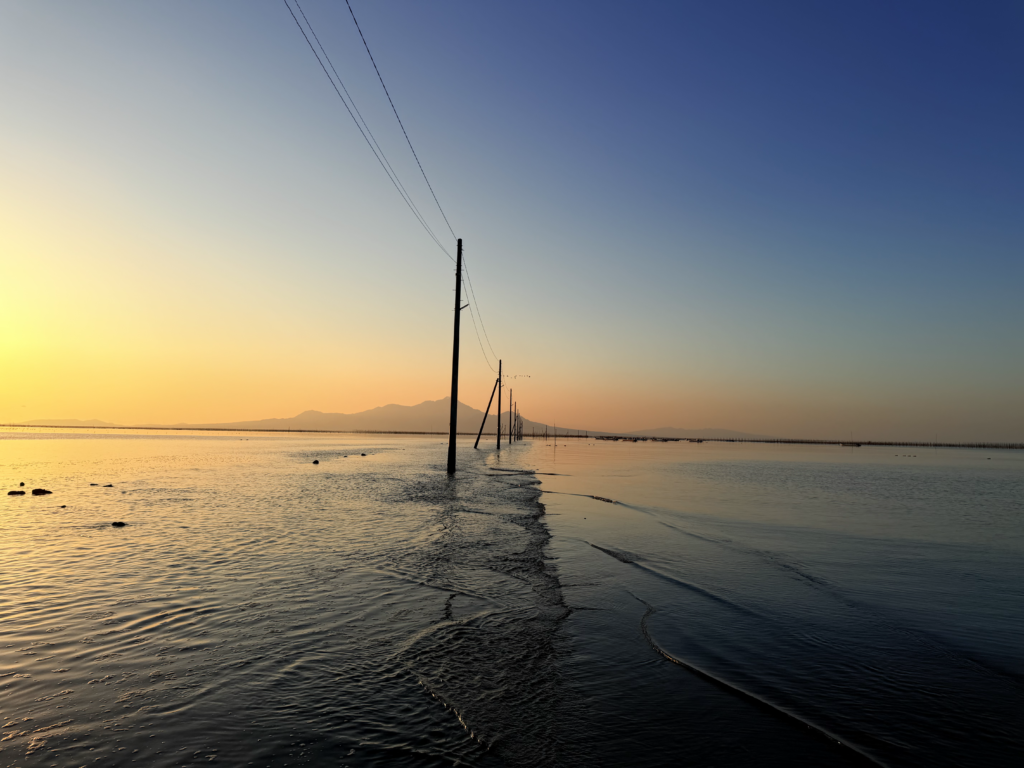 夕方の長部田海床路|潮が満ちて“道が消えていく”時間