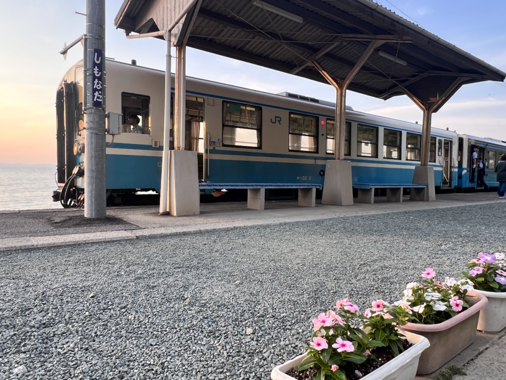 青い海を背景に、ローカル線の車両がホームへ入ってくる光景は、まさに“旅のワンシーン”そのもの。こういう景色を見ると、やっぱり列車旅っていいなと思いますよね。